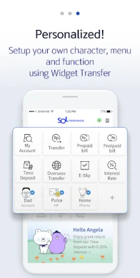 * Setup preferred menu and quick transaction on main menu. Furthermore, widget transfer is possible from Home screen