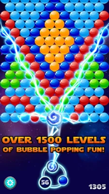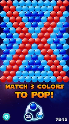 - Form a group of 3 or more bubbles of the same color to pop the combination and clear the board.