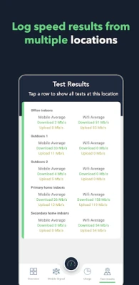 How good is the service from your current mobile provider? This app tells you by showing signal strength and download speed in all the locations that matter to you. You can use your second SIM to compare this to another provider. The results across all the locations are recorded on your mobile.
