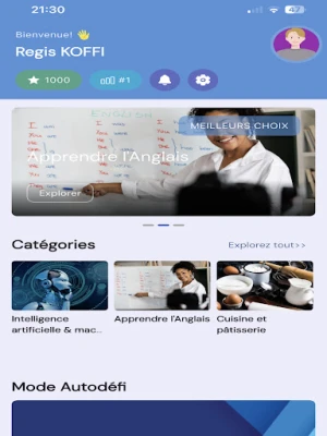 Caractéristiques principales : Cours interactifs et personnalisés : Profitez de contenus adaptés à votre niveau et à vos objectifs. Multidisciplinaire : Accédez à des leçons dans des dizaines de catégories, allant des langues aux sciences, en passant par les arts et la technologie. Apprentissage à votre rythme : Étudiez quand vous le souhaitez, où que vous soyez. Quizzes : Testez vos connaissances avec nos jeux quizzes. Suivi de progression : Visualisez vos progrès grâce à des outils simples et intuitifs.