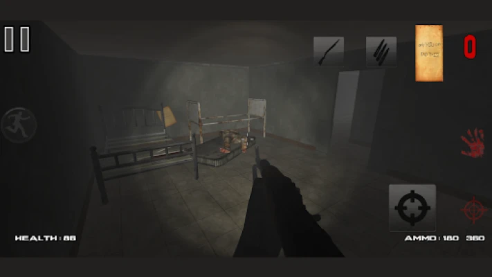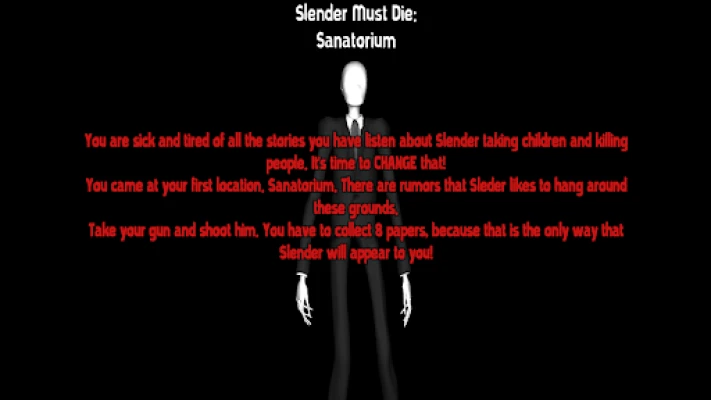 You came at your first location. Sanatorium. There are rumors that Sleder likes to hang around these grounds. Take your gun and shoot him. You have to collect 8 papers, because that is the only way that Slender will appear to you!