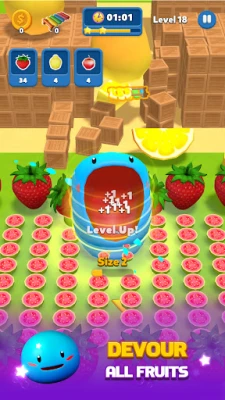🍎 Her şeyi ye! Büyümek için farklı meyveleri, binaları ve engelleri yut.