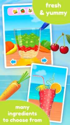 Yaratıcı ol ve Sağlıklı, lezzetli ve renkli smoothie'ler yaparak EĞLEN. Onları süsle, arkadaşlarına servis et ve minik oyunlar oyna.