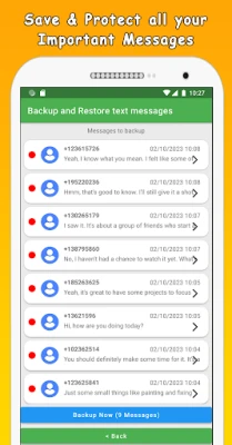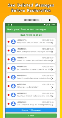 SMS Yedekleme ve Geri Yükleme, silinen kısa mesajları kurtarmak ve SMS'lerinizi güvende tutmak için mükemmel bir araçtır. Önemli bir SMS'i yanlışlıkla sildiyseniz veya değerli konuşmalarınızı kaybettiyseniz, bu silinen mesaj kurtarma uygulaması tek adresinizdir. Basit arayüzüyle silinen mesajları tek dokunuşla geri yükleyebilirsiniz! hızlı, kolay ve güvenli.