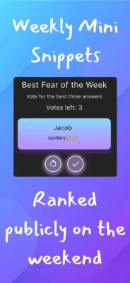 Of course there is! On the Monday of every week, the snippet of the week opens up to the public. The snippet of the week is usually a topic question that you answer something in that topic, for example, if the snippet of the week was "Book of the Week", one answer might be "Lord of the Rings". Your answer is visible to everyone and can be seen on your profile. You have until Saturday morning to answer the snippet of the week and then voting begins. You have about a day and a half to vote on what you think the best answer is, whether that be the funniest answer, most relatable, or some other determinant that you decide on. Once voting is over, the top 3 are decided and results are visible for about 16 hours.