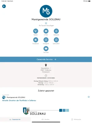 Mit über 6000 Bewohner:innen zählt die Marktgemeinde Sollenau im Steinfeld zu den einwohnerstärksten Gemeinden im Bezirk Wiener Neustadt-Land. Als Zuzugsgemeinde sehr beliebt, ist Sollenau ein Zuhause für besonders junge Familien geworden. Alt und Jung trifft sich im Ort, abwechslungsreiche Veranstaltungen tummeln sich im Eventkalender übers ganze Jahr hinweg. Tolle Angebote unserer Vereine, Wirtschaftstreibenden und Co. lassen keine Wünsche offen. Hier begegnen sich Menschen in all ihrer Vielfalt und bilden zusammen ein Zuhause, in dem man sich wohlfühlt. Sei ein Teil davon und bleibe mit der Sollenau-APP immer top informiert. Ob News, Events, Heurigentermine, Gutscheine, Müllkalender und Co. – hier hast du alles zusammengefasst.