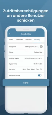Mit der SOREX SmartLock App können Sie Ihre SOREX Türschlösser ganz einfach von überall verwalten und konfigurieren. Sie können Benutzern den Zugriff freigeben, Zeitprofile anlegen und Protokolle auslesen, sowie für gewisse Zeiten einen Durchgangsmodus festlegen. Je nach Ausführung des Schlosses können Sie darüber hinaus Zahlencodes, Fingerabdrücke und RFID-Medien anlegen.