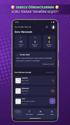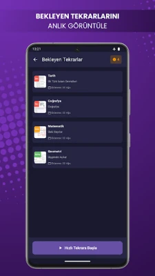 Bilimsel temelli aralıklı tekrar algoritması sayesinde öğrendiğin bilgileri unutmazsın. Uygulama, sana soruları ideal zamanlarda tekrar göstererek hafızanı güçlendirir.