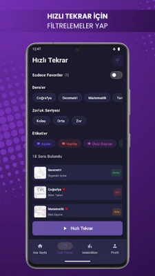 ✔️ Tekrar etmek istediğin soruları kaybedip durmaktan sıkıldıysan
