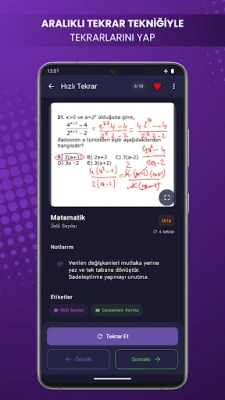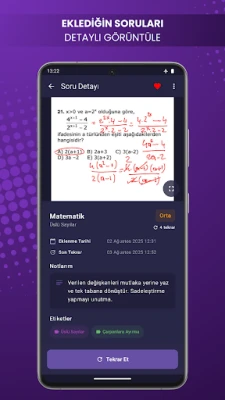 Sınavlara hazırlanırken karşılaştığın önemli soruların fotoğrafını çekerek uygulamaya ekleyebilirsin. Kitaplardan, denemelerden veya özel derslerden aldığın sorular artık kaybolmaz.