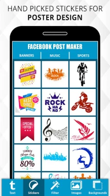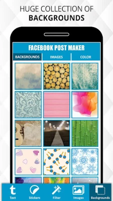 Post Maker, Post, Cover Page ve Poster benzeri profesyonelleri oluşturmak için poster yapımı için elle seçilmiş arka planlar, dokular, çıkartmalar ve metinler (fontlar) sağlar.