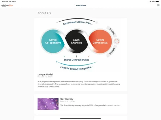 Welcome to OurSpace! The app brings you the latest news and information from The Sovini Group, a property development and management company based in Liverpool, Merseyside. OurSpace features include: • Company profile• Latest news• Job vacancies• Events• Photos and much more! Enable push notifications to ensure you are kept up-to-date anywhere, anytime!