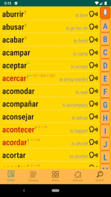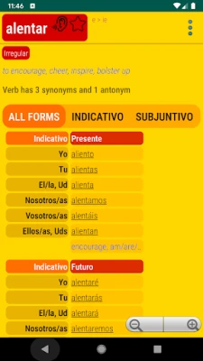 Verbes will help you to improve you Spanish language grammar by providing you with all conjugation forms of the most popular Spanish verbs in indicative, subjunctive and imperative modes. Included grammar reference will help you to better understand Spanish grammar rules. You can also extend your knowledge by playing the quizzes that the app offer which will help you to gain expand you vocabulary. Features like speech recognition and speak-out of verbs and their forms will help you to understand what is the correct pronunciation and train your speaking skills.
