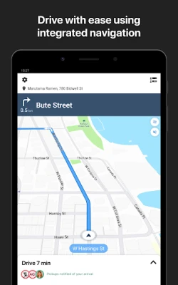 – While driving is front and centre, you can always drag up your itinerary view while you’re in your trip, or view who is currently in the vehicle and drop off early if necessary.