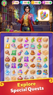 Character-Driven Quests: Meet wizards, witches, and familiars who offer quests that deepen the narrative and reward you with rare mergeable items.