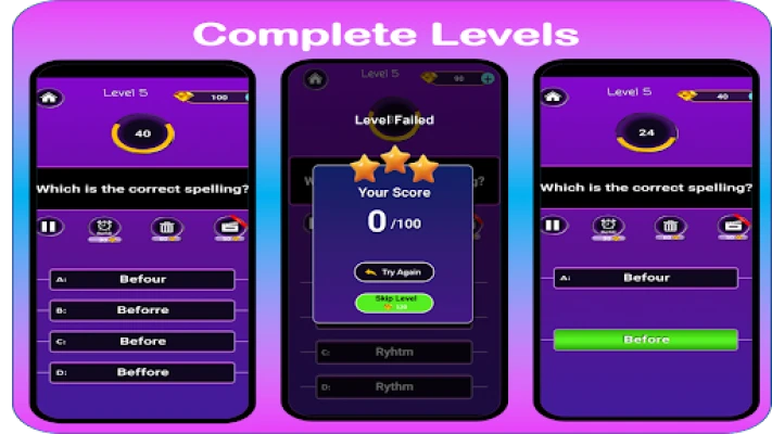 Spelling quiz - Word trivia is an English Spelling game that will make your efficiency in English very sharp.