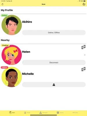 Find new friends on the same WiFi network and start chatting immediately! If you, or they, don’t feel like chatting right now, just send them a Spy Message!