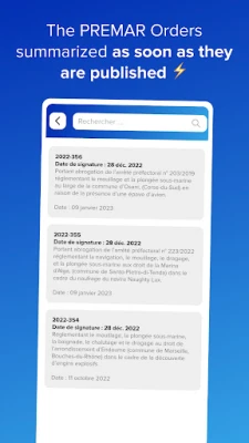 A notification keeps you up to date on the latest PREMAR (Maritime Prefecture of the Mediterranean) decrees to plan and navigate with complete peace of mind.