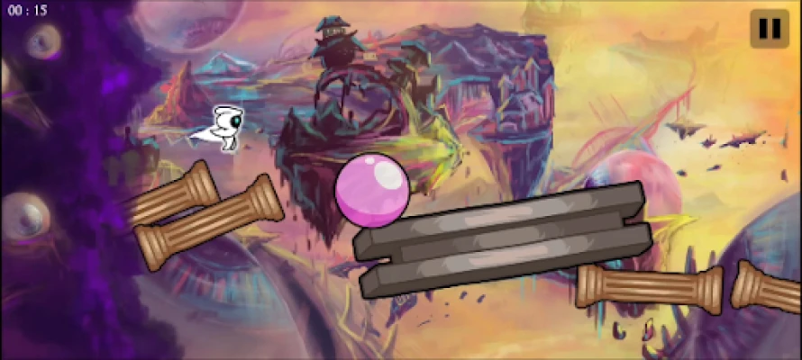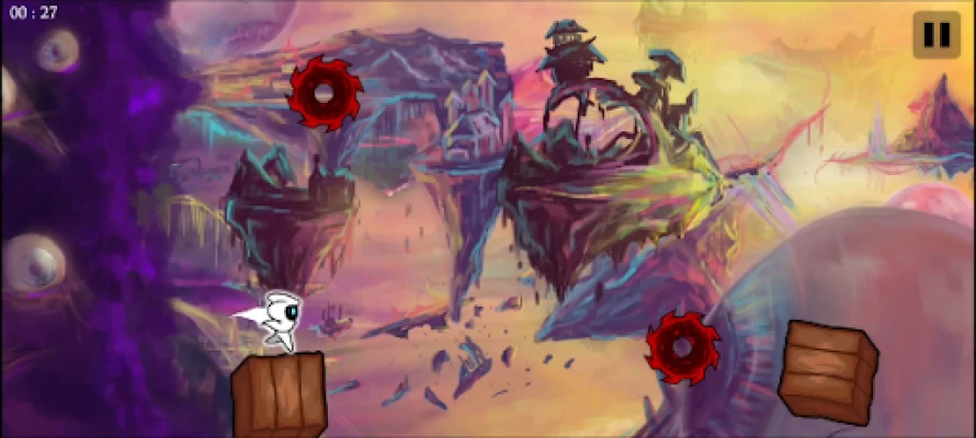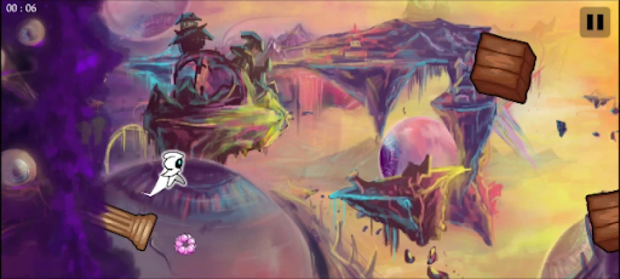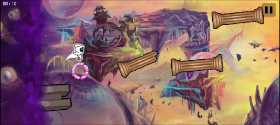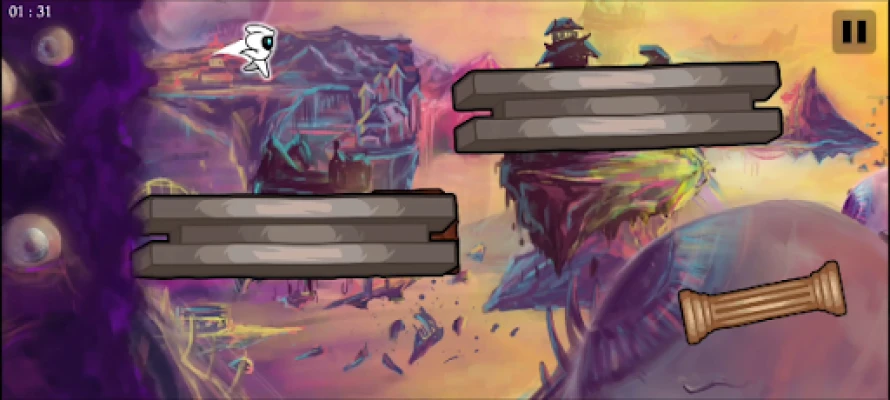 Immerse yourself in a vivid, dreamlike realm where a ghostly figure leaps across floating platforms in a quest for survival and discovery.