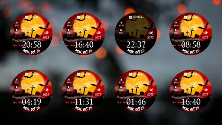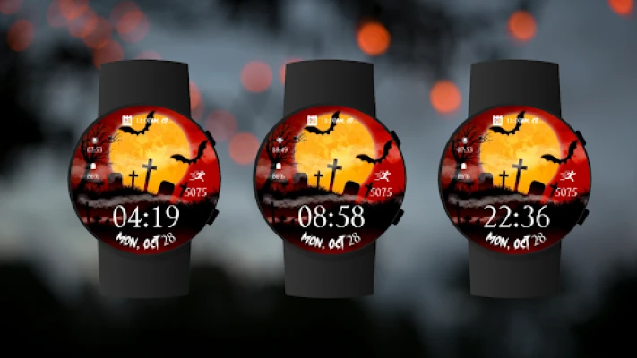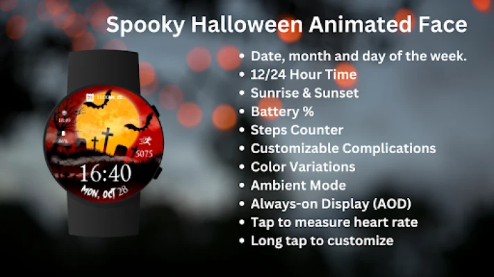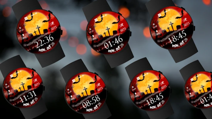 Celebrate Halloween with the spooky animated watch face! Features a haunted graveyard scene, animated bats, customizable complications, and more for a chilling timepiece.