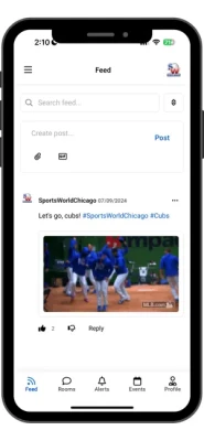 - Post in our news feed! - Join our chat room threads! - Get notified of all going on in Sports World! - Easily access our events!