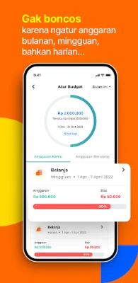 Alokasi budget sesuai kebutuhan. Atur budget makan sehari-hari, belanja, tagihan, sampai liburan dan edukasi juga bisa!