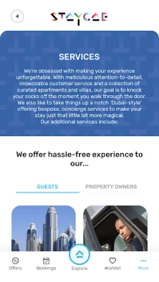 Book a Stay: we've created a world where you call the shots. Stay where-you-please, for as-long-as-you-like and we'll take care of the rest. Whether you're travelling for business, planning a romantic getaway or want to book a fun weekend with the family, our apartments and villas with verified hosts have everything you need, and more. Why us? Unlike other 'bnb' portals, we have direct connections to thousands of new-to-market properties, a solid network of hospitality experts at your fingertips and a professional management team that knows exactly how to paper you Dubai-style. All you need to do is ‘book it and live it’