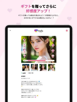 ギフトを贈ってAI美女を喜ばせよう!好感度が上がると、AI美女の対応が明らかに変わる!?お付き合いができるAI美女もいるかも!?