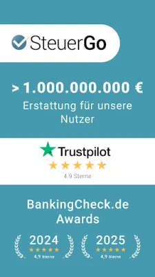 Hol dir die maximale Rückerstattung mit Deutschlands bester Steuer-App 2024: SteuerGo wurde mit dem 1. Platz des App-Awards 2024 in der Kategorie "Steuer-Apps" ausgezeichnet.