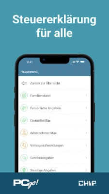 SteuerGo ermöglicht die Erstellung von Steuererklärungen der letzten vier Jahre (oder acht Jahre im Web-Browser). Die Steuer-App führt dich durch alle relevanten Bereiche, gibt hilfreiche Steuertipps und berechnet präzis deine maximale Steuererstattung – ohne Anlageformulare und Papier. Deine Steuererklärung mit all deinen Daten wird über die ELSTER-Schnittstelle an das Finanzamt gesendet. Du musst keine Lohnsteuerbescheinigungen und Belege sortieren oder scannen – das Finanzamt meldet sich bei Bedarf. Zusätzlich erleichtert die Datenübernahme-Funktion das Übertragen deiner Daten aus einer Steuererklärung in andere Steuerjahre.