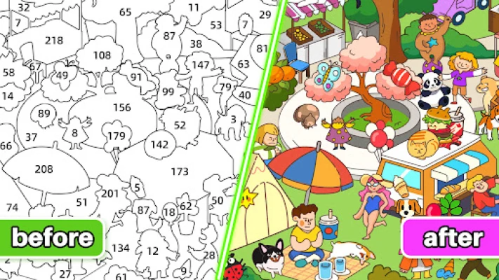 Sticker book puzzle keep things fresh with many themes. Themes of the stickerbook and color book are constantly added and updated, keeping your coloring game fun going for hours on end.