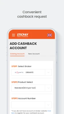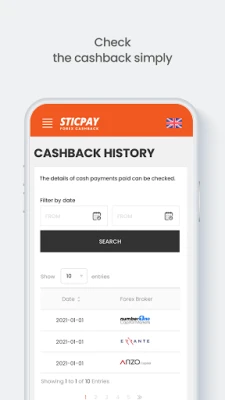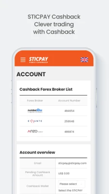 Use STICPAY's cashback app: - Easy sign-up - Conveniently add Forex / CFD Broker Account - Cashback calculator to calculate how much cashback can be earned at each broker - Check cashback details and history - Real time reports