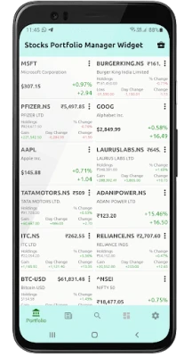 Stocks Portfolio Manager Widget is a simple and convenient app with a home screen widget that displays stock price quotes from your portfolio and helps you to manage your Share Market portfolio easily without any hassle.