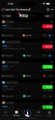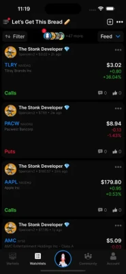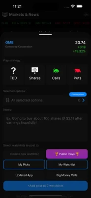 With Stonk you are able to create watchlists with your friends that actually want to hear about all your stock plays, but we didn't stop there. We added a full stock page to view chart data, stock comments, options, stock analysis/price target, and more! You can look at all the stock data before adding it to your watchlist instead of jumping back and forth between apps.