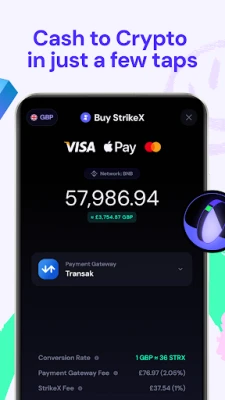 Buy & Sell an array of cryptocurrencies directly to your bank account by utilising our growing list of fiat gateway providers. StrikeX charges an additional 1% Fiat on-ramp & a 2% Fiat off-ramp fee in addition to our partner's fees. Unlike our competitors, we are committed to utilising revenue from our competitive transaction fees to update & improve our App periodically.