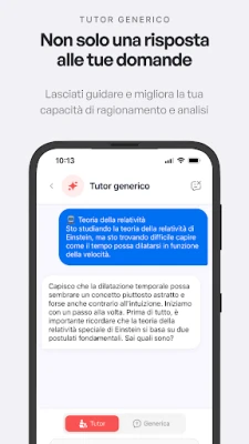 E per quei momenti in cui hai bisogno di una guida generale, la modalità tutor generico è pronta ad assisterti. Chiedi la soluzione a un problema specifico o lasciati condurre attraverso una conversazione personalizzata in cui l'intelligenza artificiale pone domande, segue il tuo apprendimento e stimola la tua curiosità. Questo dialogo costruttivo mette in luce anche gli errori, permettendoti di apprendere da essi in un contesto positivo e costruttivo.