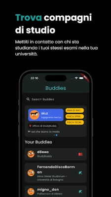 TROVA COMPAGNI DI STUDIO: Con StudyBuddy è più facile trovare persone con cui studiare e condividere l'esperienza di preparazione agli esami. Più connessioni crei, più aumentano le tue possibilità di successo!
