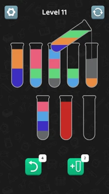 Su sıralama oyununun her oyun seviyesinde benzersiz ve zorlayıcı renk sıralama bulmacaları.
