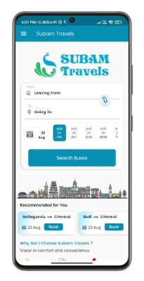 Online bus tickets booking application for Subam Travels. This app designed for book, cancel bus tickets in Subam Travels, also allows to manage already booked tickets history in Subam Travels.