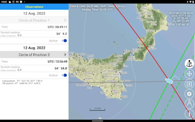The app is suitable as a backup in case satellite navigation is not available. With a cheap plastic sextant and this app, every skipper has an emergency navigation system that can be used immediately to safely arrive at any destination.