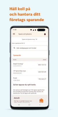Vår företagsapp är full av smarta funktioner som gör vardagen enklare. Du kan överblicka företagets konton, betala räkningar, ha koll på inbetalningar och göra överföringar med kontrasignering. Du kan också handla värdepapper, få push-notiser och skapa din egen favoritlista med fonder och aktier samt följa värdet på råvaror och valutor.