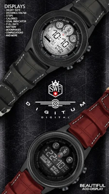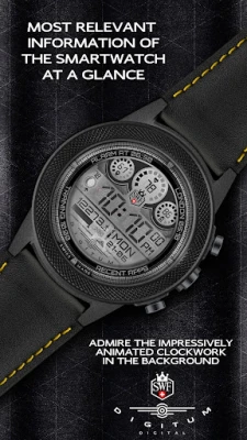 SWF Swiss Watch Faces are crafted and made in Switzerland and showing an very high grade of details. With it's clear and modern design, the SWF Digitum Digital edition is built to guide you through the time of each day. Admire the impressively animated clockwork in the background while in the foreground most smartwatch information are displayed at a glance.