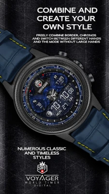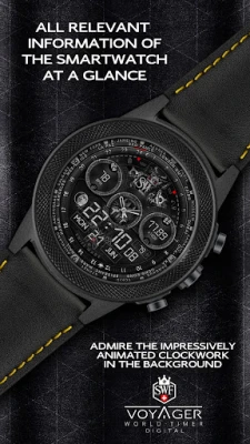 The SWF Voyager digital watch face presents itself with a extraordinary, timeless and elegant swiss design that shows you the local time with 24 GMT* time zones and most smartwatch information on your wrist in a clear and concise way.