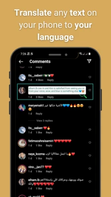 Ekran çeviri özelliğiyle, telefonunuzdaki tüm uygulamalarda yabancı metinleri kolayca çevirebilirsiniz. Bunu, sosyal medya gönderilerindeki veya yorumlardaki başlıkları çevirmek için kullanabilirsiniz; ayrıca, yabancı bir dildeki web sayfalarını kendi dilinize çevirmek için de kullanabilirsiniz.