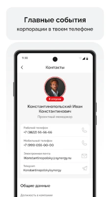 Держите телефонный справочник сотрудников под рукой! Ищите коллег по ФИО, просматривайте всю информацию о профессиональной деятельности, навыках и достижениях сотрудника.