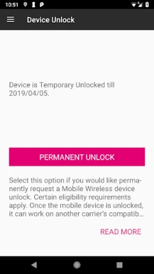Request a Permanent or Temporary Unlock for your T-Mobile Google Pixel device. The app will check your eligibility and perform the Unlock operation and may require a device restart for changes to take affect.