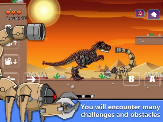 We will have a new dinosaur army members. This time, we would create a skeleton T-Rex robot with the dinosaur fossils. Alien robots invade earth, they are attacking the scientific centers in the Egyptian desert. We have to beat all alien robots.In the game, you will encounter many challenges and obstacles, do not give up, victory favors you!