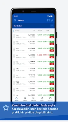 * Özel Sayfalarda Takip Listesi oluşturarak Borsa İstanbul’daki hisse senetleri ve VIOP kontratlarını kolayca takip