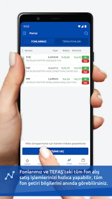Tacirler Mobile ile finansal bilgi, haber ve verilere ücretsiz ulaşarak Borsa İstanbul’da hisse ve VİOP işlemleri yapabilir; tüm yatırım fonlarını alıp satabilirsiniz. Siz de yatırım yapmanın yeni yollarını hiçbir ek ücret ödemeden Tacirler Mobile ile keşfedin.