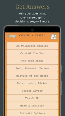Rehberli Konu Şablonları: Aşk, kariyer, karar verme veya ruhsal rehberlik olsun, bir ila dört kartlık açılımlardan seçim yapın ve sizin için en önemli olan sorulara odaklanın.